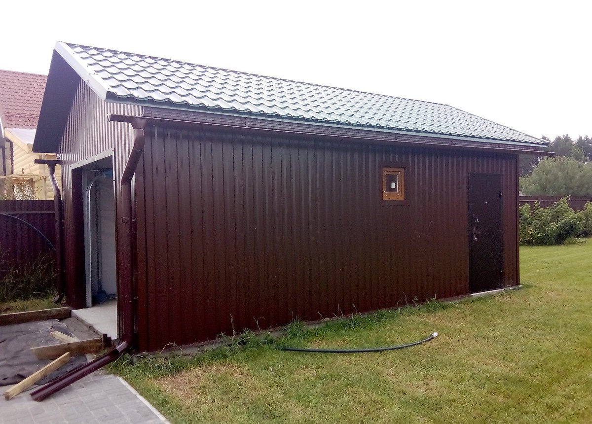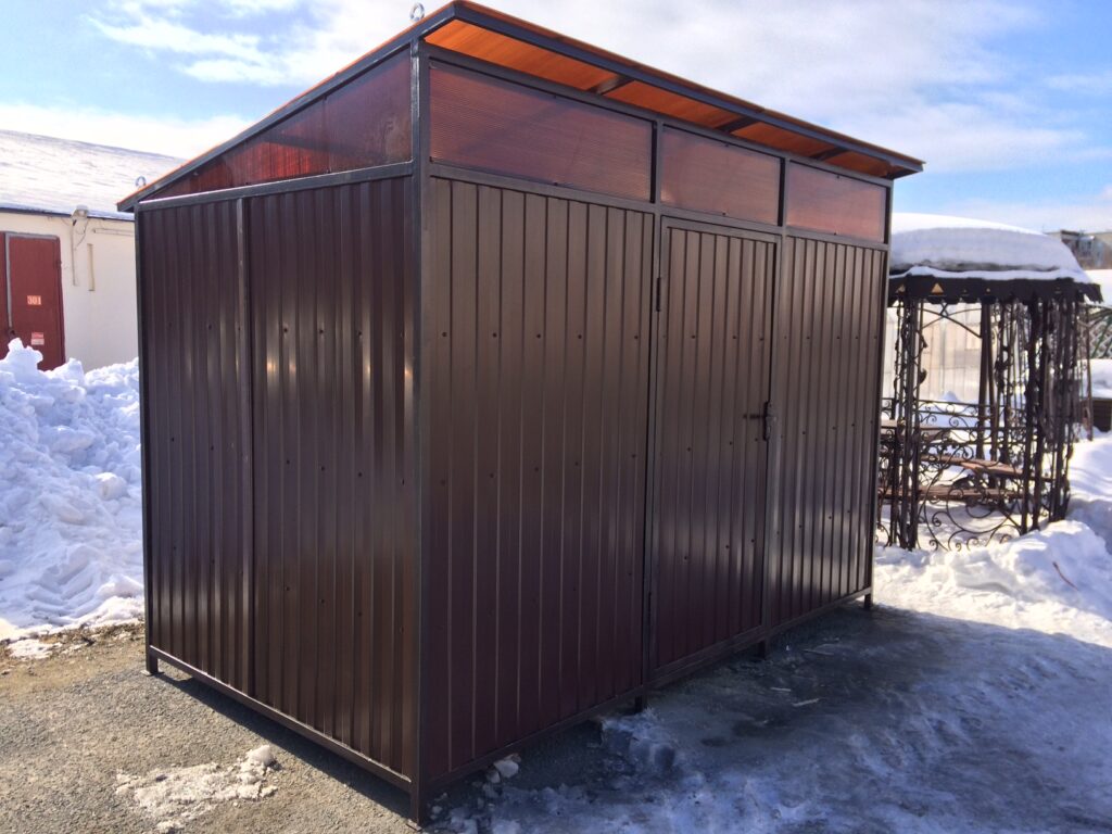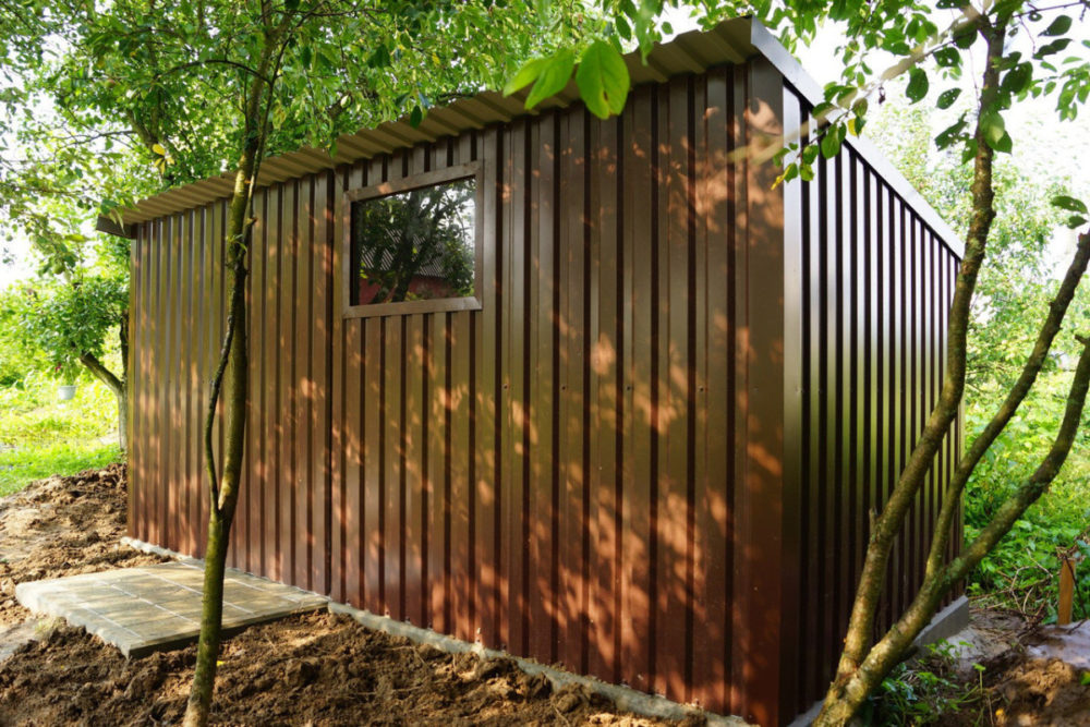 Хозпостройка из металлопрофиля занимает мало места на участке, при солидной внутренней вместимости. Это строение можно использовать для разных целей, например купить металлический хозблок для дачи и сделать в нём летнюю кухню. Или, заказать его, если на вас работает бригада строителей. Так мастера смогут быстро и легко организовать свой быт.