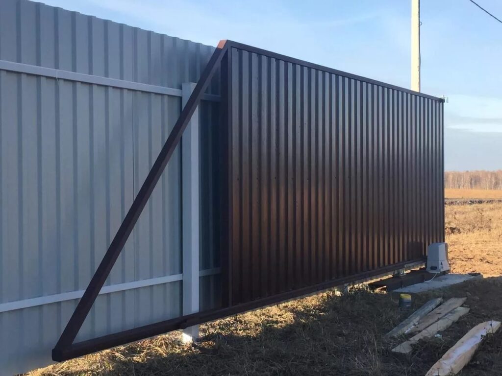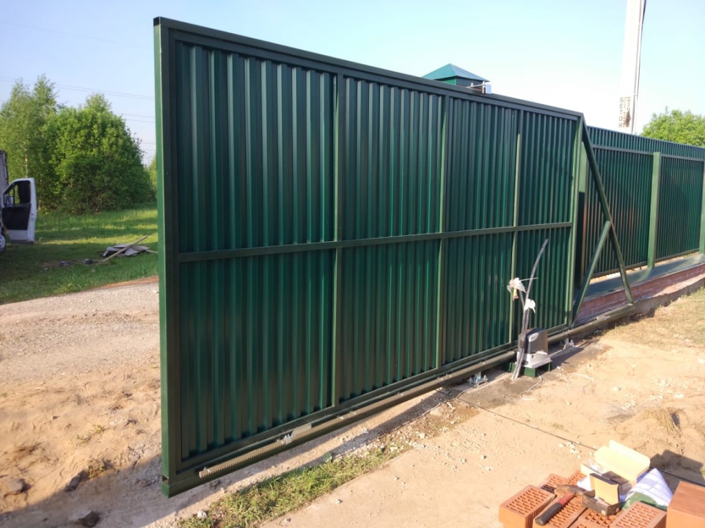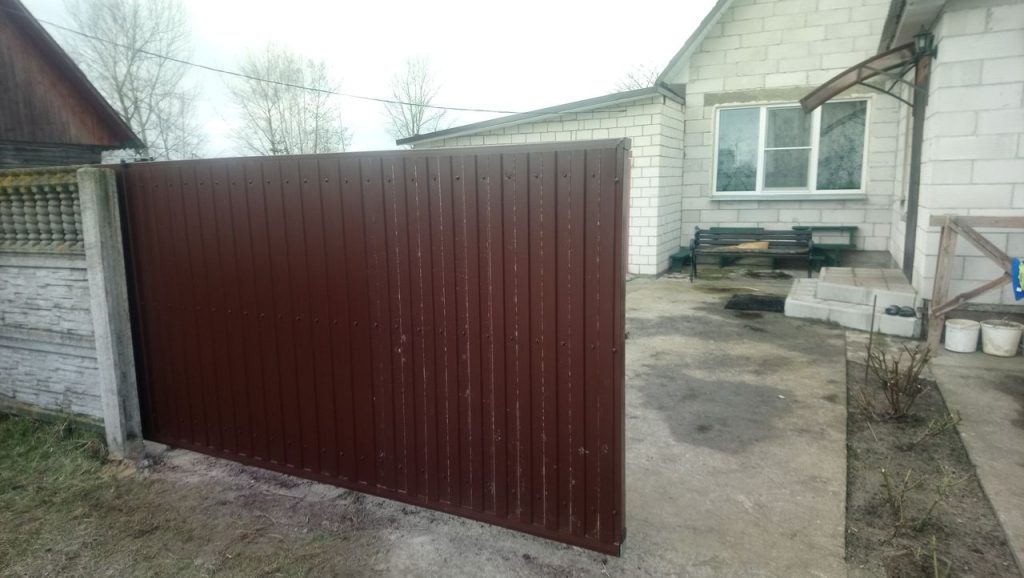 Откатные ворота из металлопрофиля